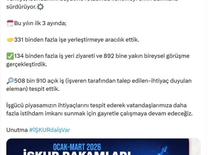Çalışma ve Sosyal Güvenlik Bakanı Vedat Işıkhan, 2023 yılının ilk üç ayında Türkiye’de 331 binin üzerinde kişinin...