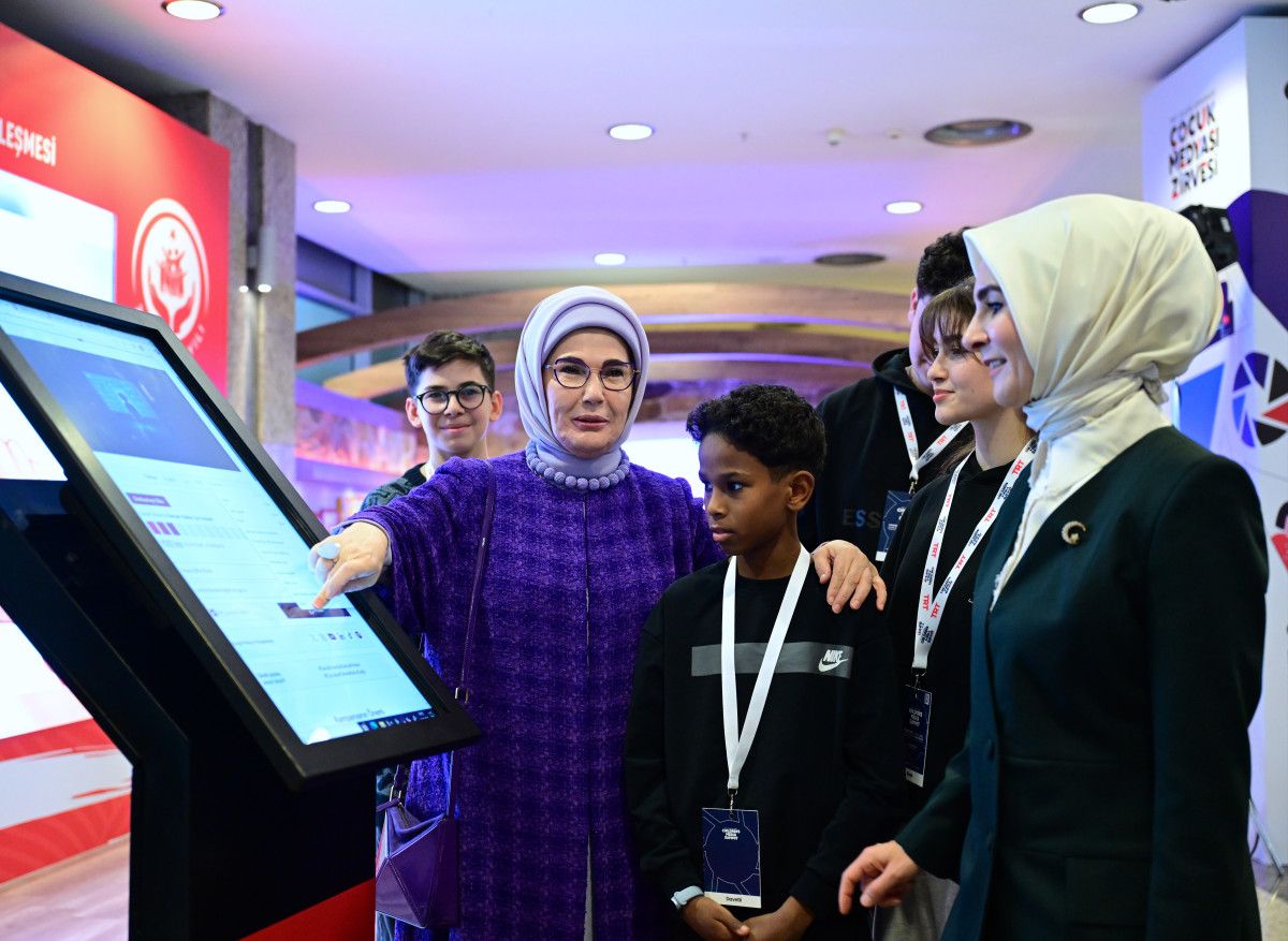 Emine Erdoğan, zirvenin çocukların medya okuryazarlığını güçlendirmeyi ve çocuk dostu içerik üretimini teşvik etmeyi amaçlayan yapısına dikkati çekmek için yapılan etkinlikleri de yerinde inceledi.